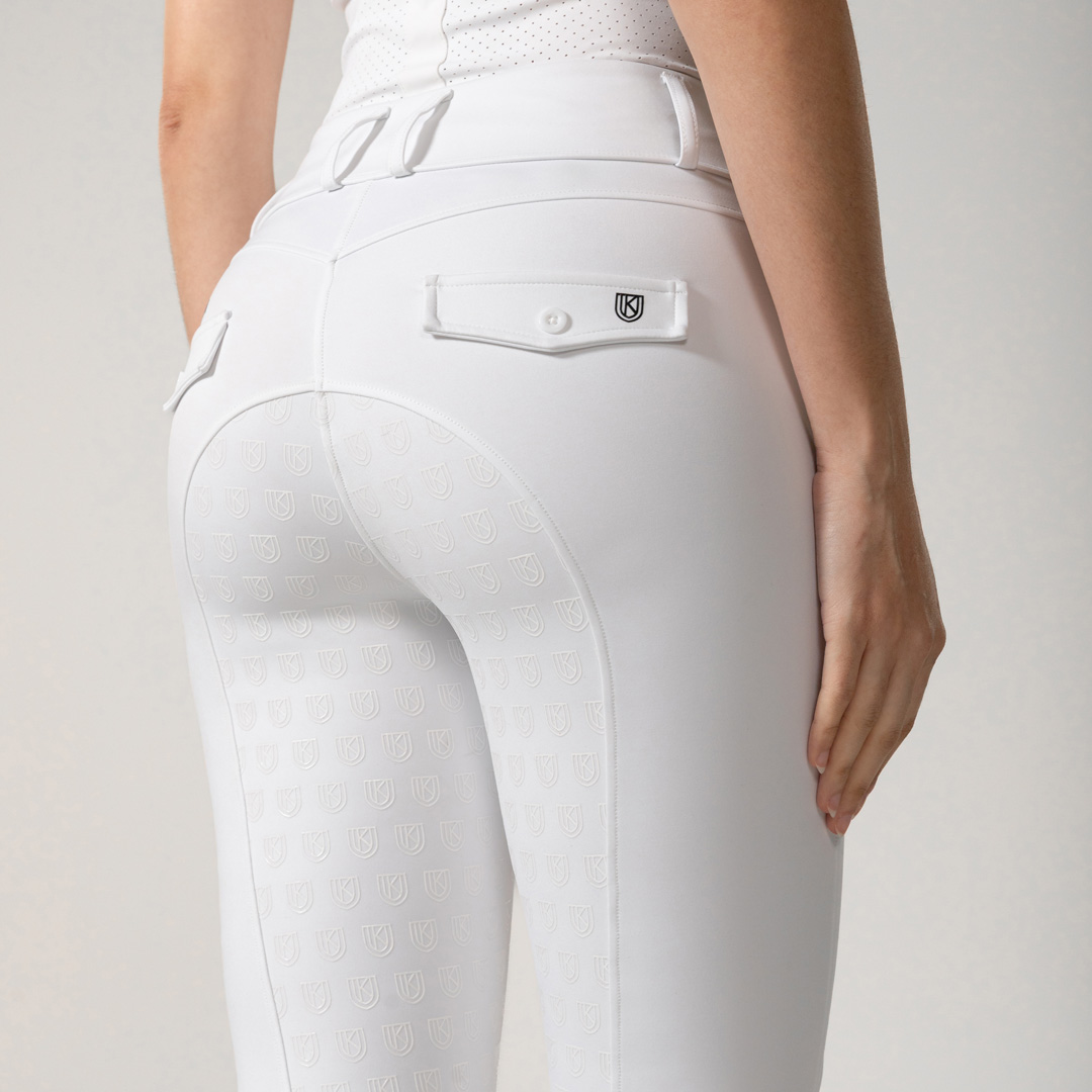 Designed with intention, the Alara Full Grip Breeches embody Kalvara’s balance of performance and refined elegance. Crafted from a high-compression, four-way stretch fabric, Alara sculpts and supports the body while allowing complete freedom of movement. The fabric maintains shape and comfort throughout the day, from training to competition. A full grip seat enhances stability, while clean lines, belt loops, and a discreet phone pocket complete the design with understated practicality and modern style.